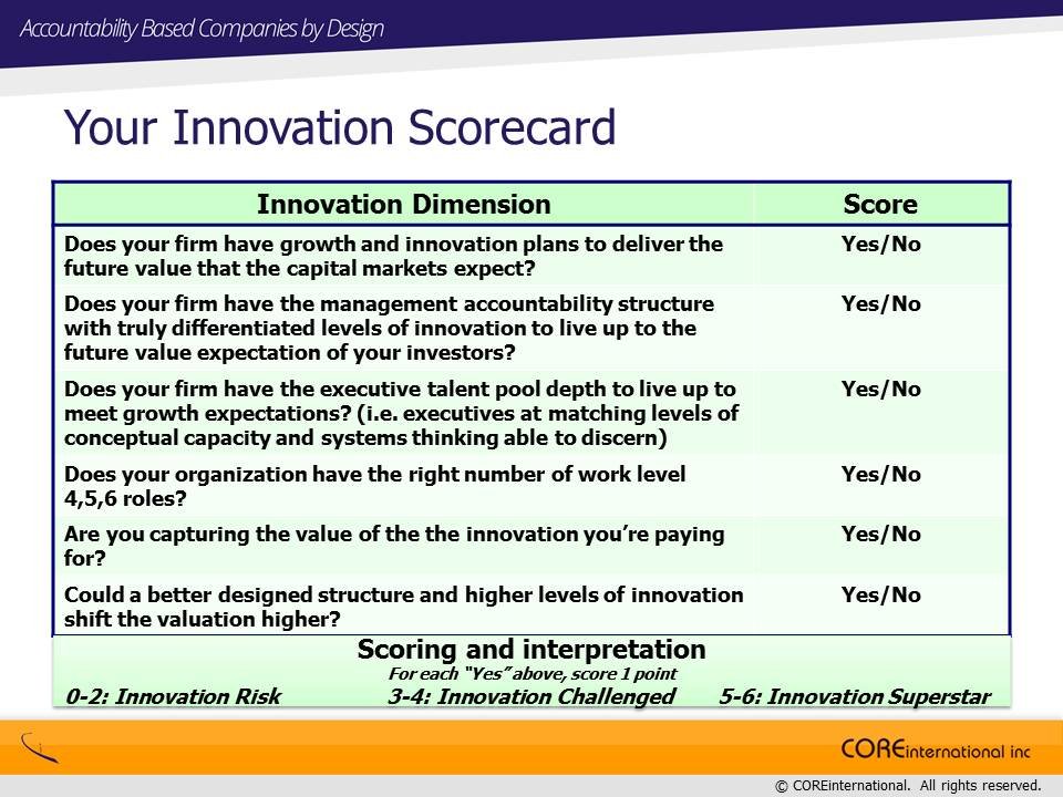 Is your organization designed to foster innovation? Rate your organization using the chart below: